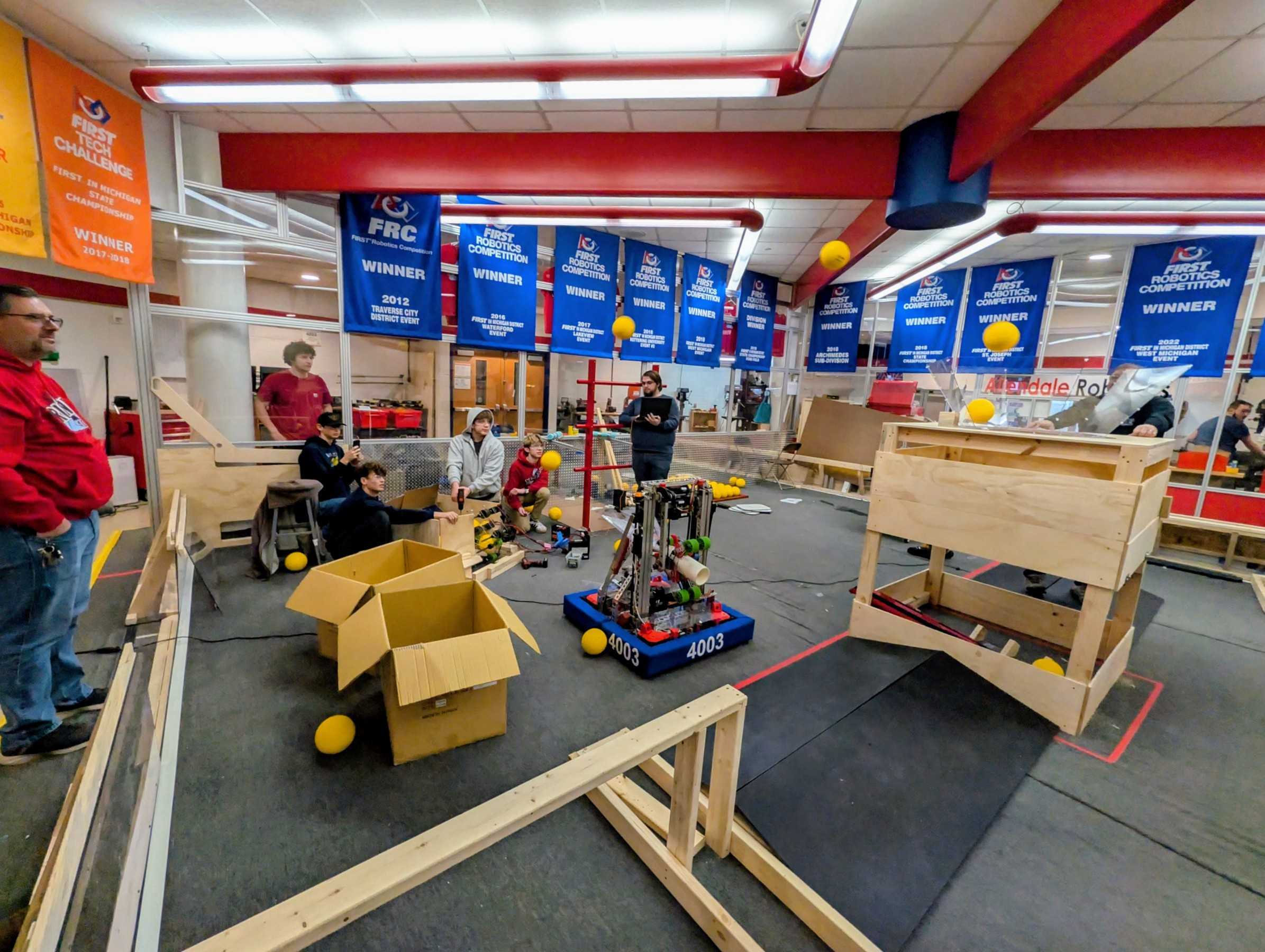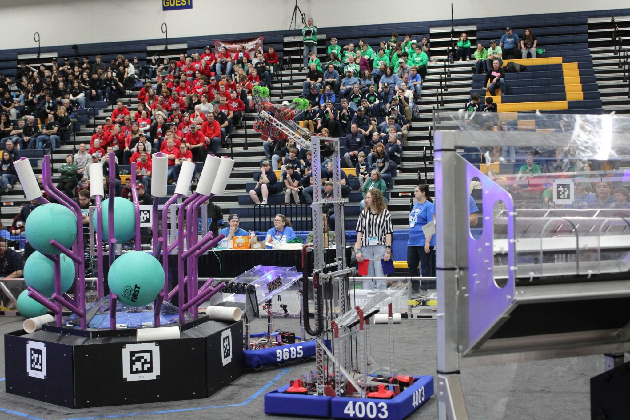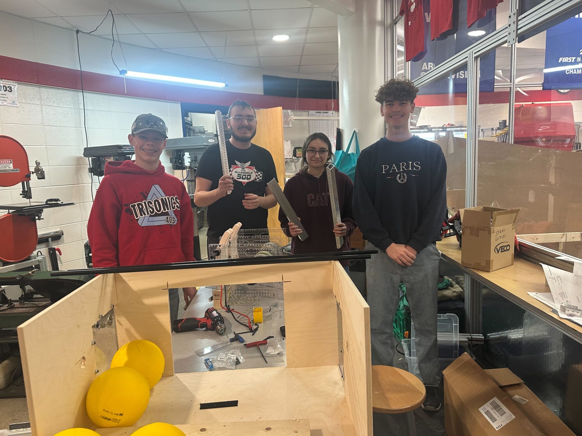 The TriSonics, our High School team, compete nationwide in the FRC portion of FIRST. In January, a game is announced to all teams at the same time. Then, we have 6 weeks to design, build, and program our robots. Next, comes competition season! This consists of 6 weeks starting in March and ending in mid-April. Finally, the world championship is held the last week of April.